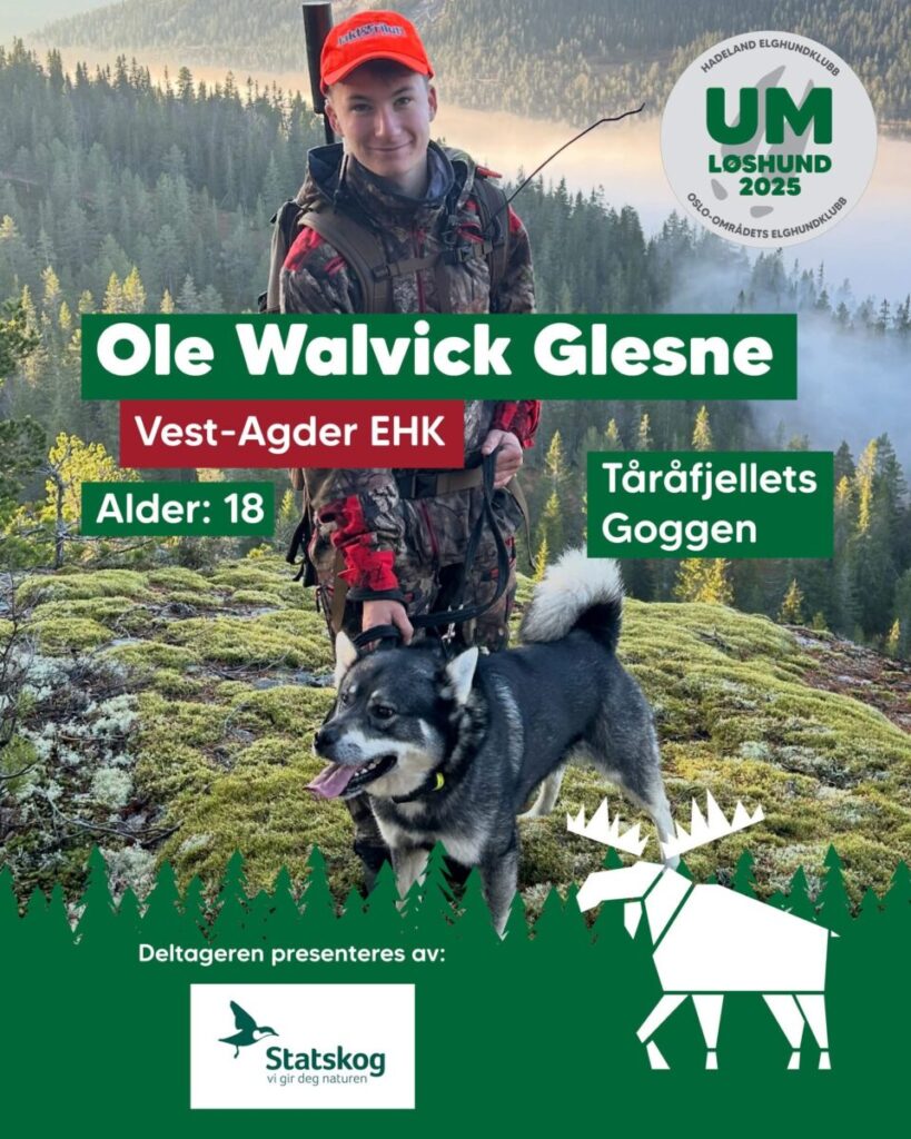 Gratulerer til Ole Walvick Glesne og Tåråfjellets Goggen (NO43611/21) som vinnere av UM løshund 2025. Utrolig morsomt og sterkt at klubben klarte å forsvare tittelen etter som Jonas Heddeland-Roland var tittelforsvarer med Sigderdammens I-Eira (NO41202/21). Gratulerer også til hundeeier og pappa Petter Glesne, samt bestefar Tormod Glesne som også var klubbens dommer representant på arrangementet.